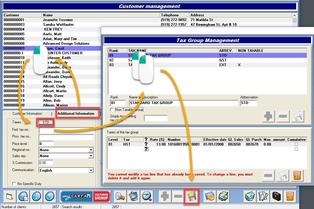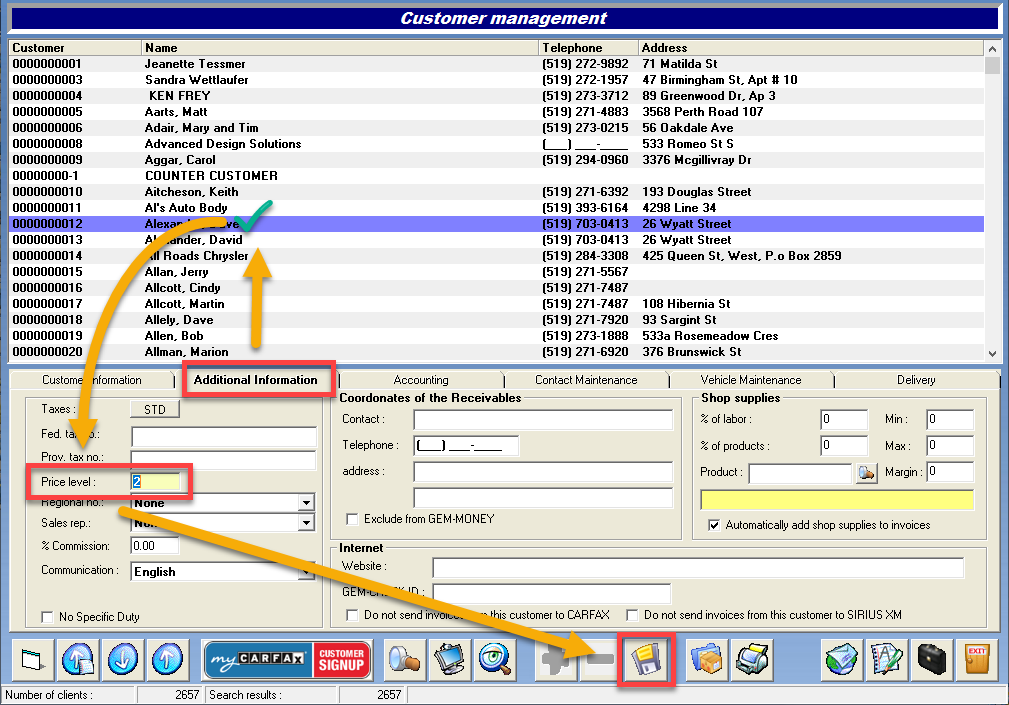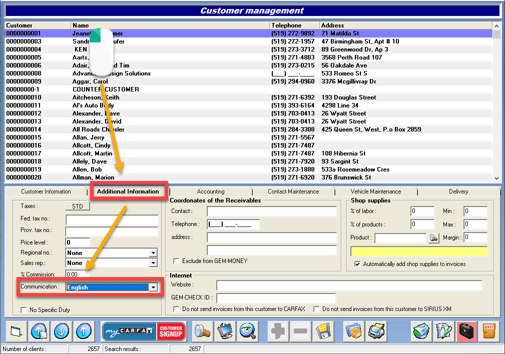 - In the Customer management window, on the Additional information tab, select a customer on the list.